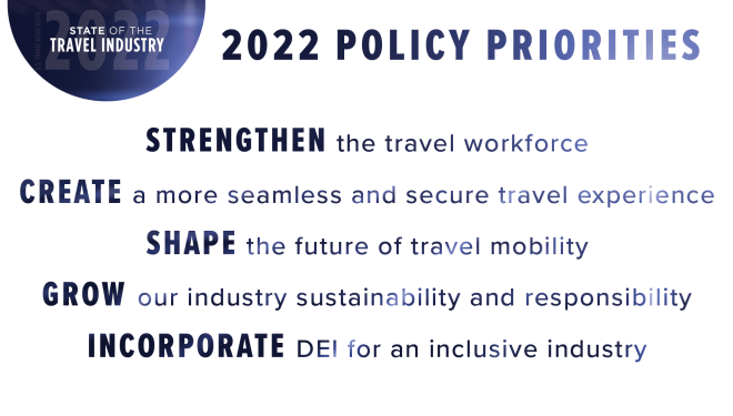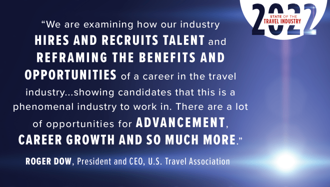 February 2, 2022 2022 State of the Travel Industry Washington, District of Columbia View Full Remarks Image 2022 State of the Travel Industry: U.S. Travel President & CEO Roger Dow and Executive Vice President for Public Affairs and Policy Tori Emerson Barnes delivered an exclusive update on the state of the American travel industry. U.S. Travel’s leadership laid out a vision for the future of travel—including both short and long term priorities that will have a significant impact on our industry in the coming months, years and decades. Click here to read the full prepared remarks. To view the press release, click here. Video URL KEY TAKEAWAYS AND QUOTES Image Full Address Recording Press Release CONTACT US Laura Holmberg 202.408.2157 Email ›